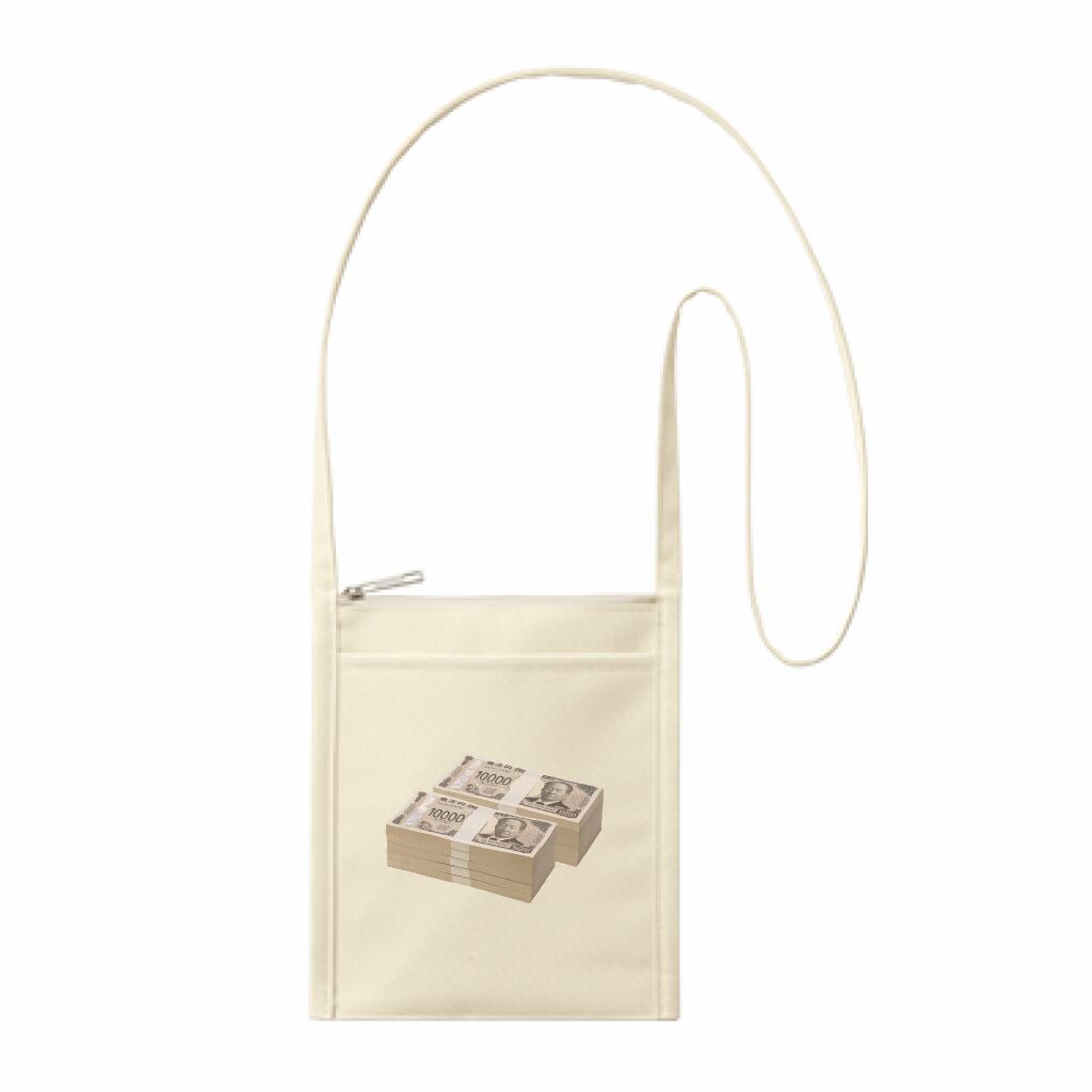 1000万円分のお札の束をデザインしたスマホポーチになります。