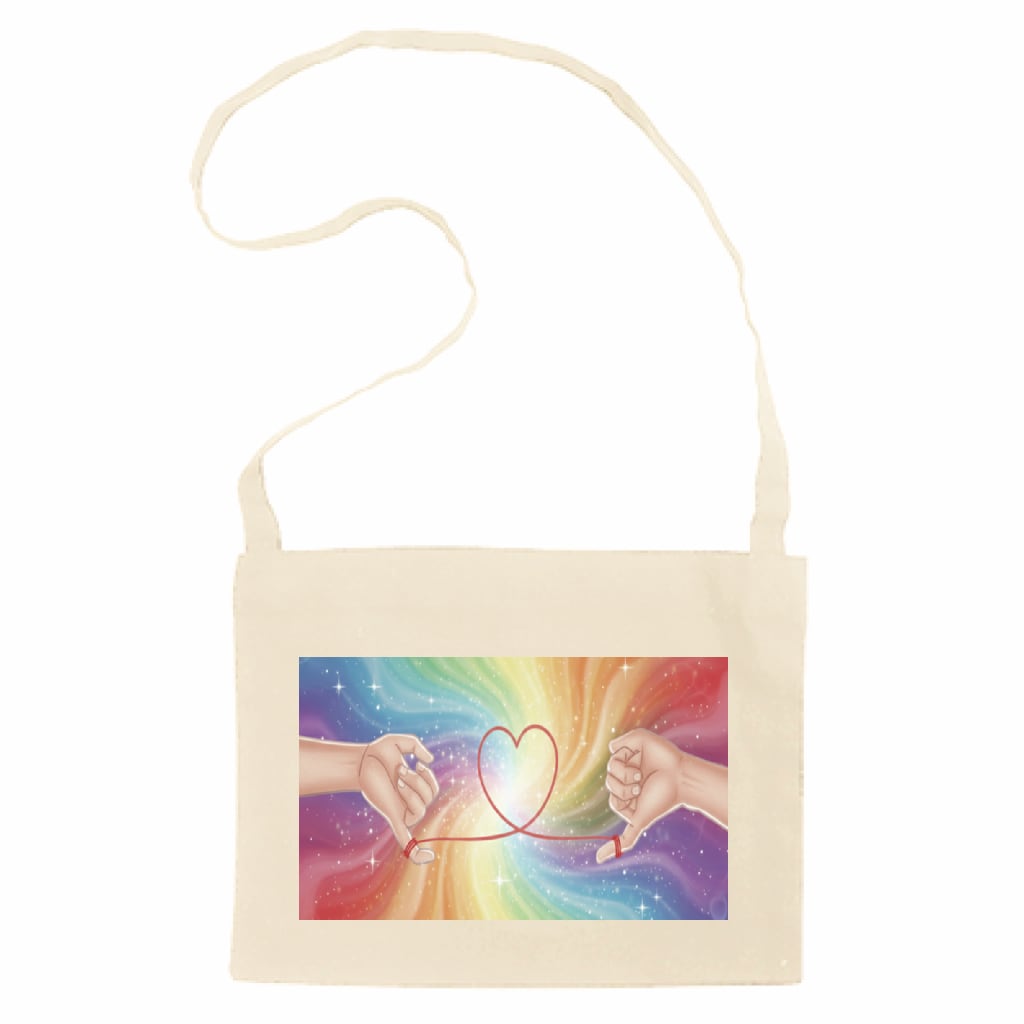 小指同士の運命の赤い糸をデザインしたサコッシュになります。