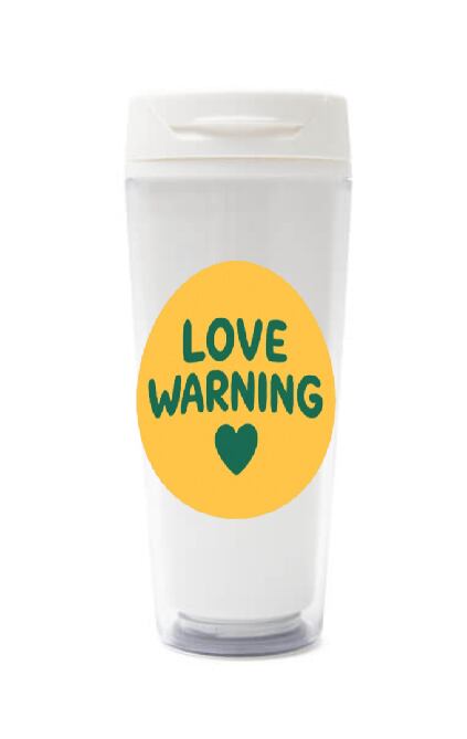 「LOVE WARNING」(恋愛警報)マークをデザインしたタンブラーになります。