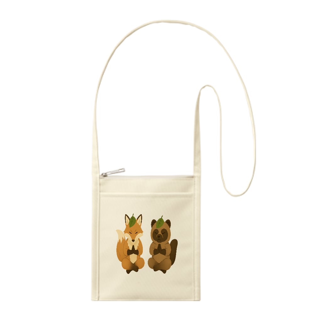 狐と狸の根比べの様子をデザインしたスマホポーチになります。